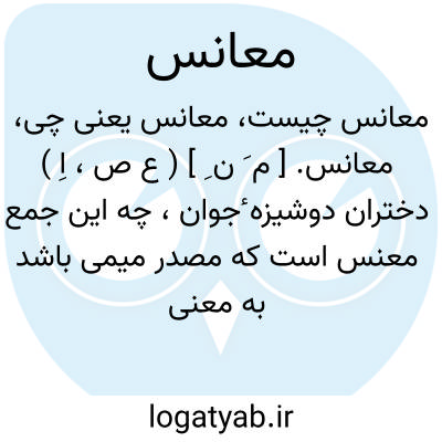 معانس. [ م َ ن ِ ] ( ع ص، اِ ) دختران دوشیزه ٔجوان، چه این جمع معنس است که مصدر میمی باشد به معنی فاعل که عانس است مأخوذ از عنس و عنوس که به معنی دیر ماندن زن است بعد بلوغ به خانه پدر بی شوی ( غیاث ) ( آنندراج ). و رجوع به عانس و عنوس و عناس شود.