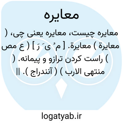 ( معایرة ) معایرة. [ م ُ ی َ رَ ] ( ع مص ) راست کردن ترازو و پیمانه. ( منتهی الارب ) ( آنندراج ). || دو پیمانه را با یکدیگر اندازه کردن و دیدن کمی و بیشی آنها را. ( از منتهی الارب ). عیار. پیمانه و ترازو را با پیمانه و ترازوی دیگر سنجیدن و امتحان کردن برای دانستن صحت کار آن. ( از اقرب الموارد ). راست کردن پیمانه ها و ترازوها با یکدیگر. ( المصادر زوزنی ). واکن کردن ترازو و قپان و پیمانه. ( یادداشت به خط مرحوم دهخدا ). و رجوع به معاورة شود.