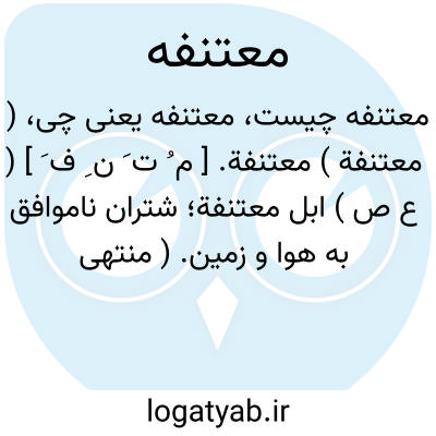 ( معتنفة ) معتنفة. [ م ُ ت َ ن ِ ف َ ] ( ع ص ) ابل معتنفة؛ شتران ناموافق به هوا و زمین. ( منتهی الارب ) ( آنندراج ) ( از ناظم الاطباء ) ( از اقرب الموارد ).