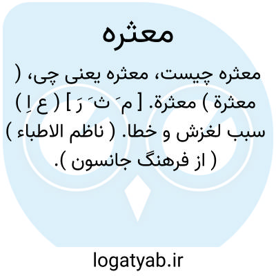 ( معثرة ) معثرة. [ م َ ث َ رَ ] ( ع اِ ) سبب لغزش و خطا. ( ناظم الاطباء ) ( از فرهنگ جانسون ).