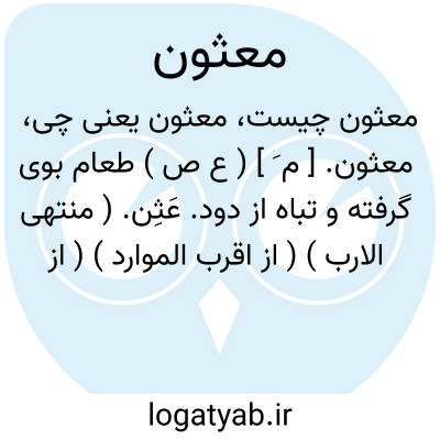 لغت نامه دهخدا معثون. [ م َ ] ( ع ص ) طعام بوی گرفته و تباه از دود. عَثِن. ( منتهی الارب ) ( از اقرب الموارد ) ( از ناظم الاطباء ).