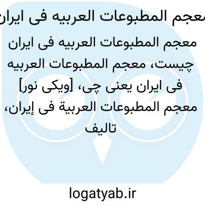 [ویکی نور] معجم المطبوعات العربیة فی إیران، تالیف عبدالجبار الرفاعی، فرهنگ نامه ای است که در آن کتب عربی که در ایران تا سال 1300ق، چاپ شده، گردآوری و معرفی شده است.
