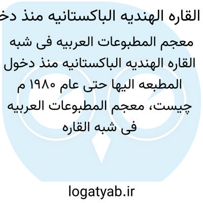 [ویکی نور] معجم المطبوعات العربیة فی شبه القارة الهندیة الباکستانیة منذ دخول المطبعة إلیها حتی عام 1980، تألیف احمد خان، فرهنگ کتب چاپ شده عربی در هند و پاکستان در محدوده زمانی ذکرشده در عنوان کتاب است.