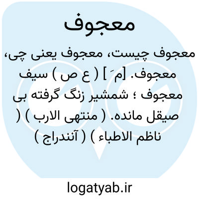 معجوف. [م َ ] ( ع ص ) سیف معجوف؛ شمشیر زنگ گرفته بی صیقل مانده. ( منتهی الارب ) ( ناظم الاطباء ) ( آنندراج ) ( از اقرب الموارد ). || بعیر معجوف؛ شتر لاغر. ( منتهی الارب ) ( ناظم الاطباء ) ( آنندراج ) ( از اقرب الموارد ).