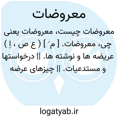 لغت نامه دهخدا معروضات. [ م َ ] ( ع ص، اِ ) عریضه ها و نوشته ها. || درخواستها و مستدعیات. || چیزهای عرضه شده و اظهار کرده شده. ( ناظم الاطباء ).