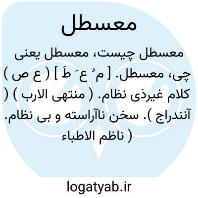 لغت نامه دهخدا معسطل. [ م ُ ع َ طَ ] ( ع ص ) کلام غیرذی نظام. ( منتهی الارب ) ( آنندراج ). سخن ناآراسته و بی نظام. ( ناظم الاطباء ) ( از اقرب الموارد ).