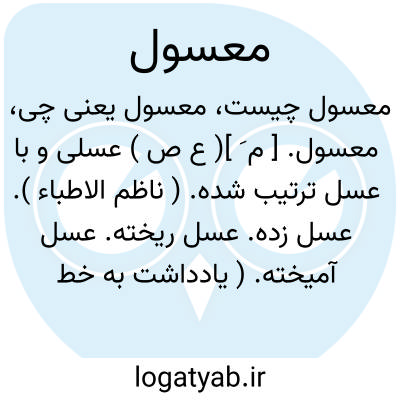 معسول. [ م َ ]( ع ص ) عسلی و با عسل ترتیب شده. ( ناظم الاطباء ). عسل زده. عسل ریخته. عسل آمیخته. ( یادداشت به خط مرحوم دهخدا ). شهدآلود: و اگرچه منشی و مبدع آن را به فضل تقدم بل به تقدیم فضل رجحانی شایع است اما آن به حدیقه ای ماند که در او اگرچه ذوقها را معسول و طبعها را مقبول باشد جزیک میوه نتوان یافت. ( مرزبان نامه چ قزوینی ص 296 ).