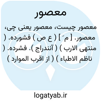 معصور. [ م َ ] ( ع ص ) فشورده. ( منتهی الارب ) ( آنندراج ). فشرده. ( ناظم الاطباء ) ( از اقرب الموارد ): و آب حسک معصور. ( ذخیره خوارزمشاهی، یادداشت به خط مرحوم دهخدا ). || زبانی که از تشنگی خشک شده باشد. ( از اقرب الموارد ).