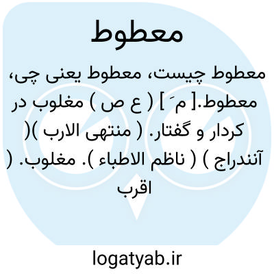 لغت نامه دهخدا معطوط.[ م َ ] ( ع ص ) مغلوب در کردار و گفتار. ( منتهی الارب )( آنندراج ) ( ناظم الاطباء ). مغلوب. ( اقرب الموارد ).