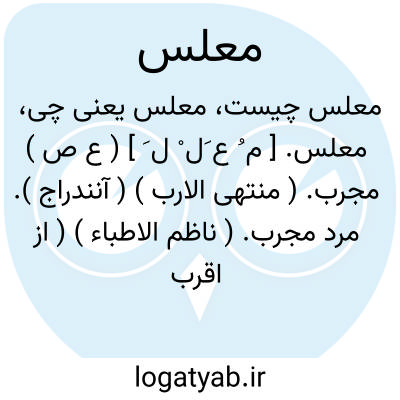 لغت نامه دهخدا معلس. [ م ُ ع َل ْ ل َ ] ( ع ص ) مجرب. ( منتهی الارب ) ( آنندراج ). مرد مجرب. ( ناظم الاطباء ) ( از اقرب الموارد ).