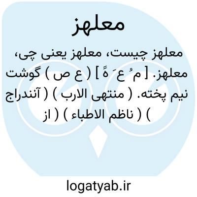 لغت نامه دهخدا معلهز. [ م ُ ع َ هََ ] ( ع ص ) گوشت نیم پخته. ( منتهی الارب ) ( آنندراج ) ( ناظم الاطباء ) ( از اقرب الموارد ).