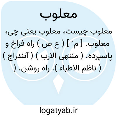 معلوب. [ م َ ] ( ع ص ) راه فراخ و پاسپرده. ( منتهی الارب ) ( آنندراج ) ( ناظم الاطباء ). راه روشن. ( مهذب الاسماء ) ( از اقرب الموارد ). || سیف معلوب؛ شمشیر که قبضه آن از پی گردن شتر پیچیده باشد. ( منتهی الارب ) ( آنندراج ) ( ناظم الاطباء ) ( از اقرب الموارد ). || گرفتار بیماری عَلَب. ( ناظم الاطباء ).