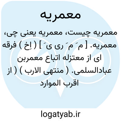 معمریه. [ م َ م َ ری ی َ ] ( اِخ ) فرقه ای از معتزله اتباع معمربن عبادالسلمی. ( منتهی الارب ) ( از اقرب الموارد ). اینان معتقدندحق تعالی جز اجسام چیزی نیافریده و اعراض مخلوق اجسامند یا طبعاً مانند آتش برای سوزاندن و آفتاب برای گرمی و یا اختیاراً مانند حیوان برای رنگها و عجب آنکه حدوث اجسام و فنای آن به عقیده معمر از جانب اجسام است و در این صورت چگونه می گوید که آن افعال از اجسام می باشد و می گویند خداوند را به صفت قدیم نمی توان ستود چه قدیم دلالت کند بر تقدم زمانی و حق جل شأنه زمانی نیست. و خداوند به خود دانا نیست و الا اتحادعالم و معلوم لازم آید. ( از کشاف اصطلاحات الفنون ). فرقه ای از معتزله اند که گویند خدای متعالی غیر از اجسام چیزی نیافریده است و اعراض از اجسام به وجود آمده اند و حدوث اجسام و فنای آنها اعراضند. ( فرهنگ علوم نقلی جعفر سجادی ). و رجوع به الملل و النحل شهرستانی ج 1 ص 83 و 84 و ترجمه الفرق بین الفرق بغدادی ص 154-158 و خاندان نوبختی ص 264 و معمربن عباد سلمی شود.