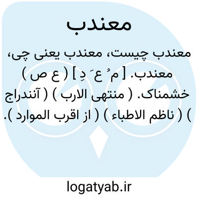 لغت نامه دهخدا معندب. [ م ُ ع َ دِ ] ( ع ص ) خشمناک. ( منتهی الارب ) ( آنندراج ) ( ناظم الاطباء ) ( از اقرب الموارد ).