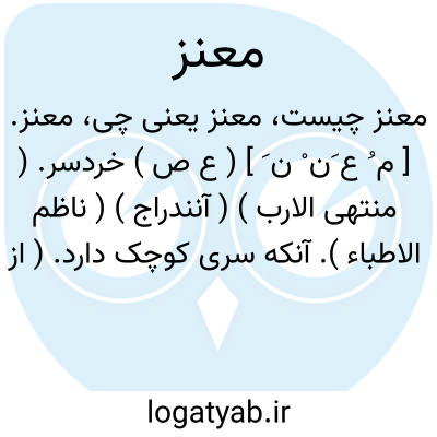معنز. [ م ُ ع َن ْ ن َ ] ( ع ص ) خردسر. ( منتهی الارب ) ( آنندراج ) ( ناظم الاطباء ). آنکه سری کوچک دارد. ( از اقرب الموارد ). || معنزالوجه، کم گوشت روی. ( منتهی الارب ) ( از آنندراج ) ( ناظم الاطباء ) ( از اقرب الموارد ). || معنزاللحیة؛ آنکه ریش او به ریش تکه ماند. ( منتهی الارب ) ( آنندراج ) ( ناظم الاطباء ) ( از اقرب الموارد ).