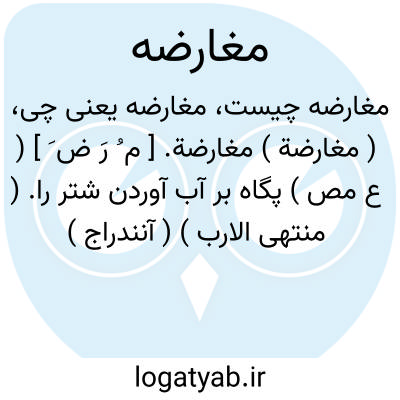 ( مغارضة ) مغارضة. [ م ُ رَ ض َ ] ( ع مص ) پگاه بر آب آوردن شتر را. ( منتهی الارب ) ( آنندراج ) ( ناظم الاطباء ) ( از اقرب الموارد ).