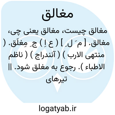 مغالق. [ م َ ل ِ ] ( ع اِ ) ج ِ مِغلَق. ( منتهی الارب ) ( آنندراج ) ( ناظم الاطباء ). رجوع به مغلق شود. || تیرهای فائز، صفت است نه علم. ( منتهی الارب ). تیرهای فائز. ( ناظم الاطباء ). و گویند مغالق از نعوت تیرهای فائز است و از نامهای آن نیست. ( از اقرب الموارد ). || فروبستگیها. تنگناها. دشواریها: مدتها در مضایق آن شدت و مغالق آن کربت بماندیم. ( ترجمه تاریخ یمینی چ 1 تهران ص 26 ). فرمودند که به جانب سیستان باید رفت... و آن لشکرها را از مضایق غربت و مغالق کربت خلاص دادن. ( ترجمه تاریخ یمینی چ 1 تهران ص 60 ). چون ابوالحسن... قوت و شوکت ایشان دانسته بود و درایت و تجربت ایشان در دخول مضایق و افتتاح مغالق و تدبیر کارها... شناخته تا نیم شبی از شهر بیرون آمد. ( ترجمه تاریخ یمینی چ 1 تهران ص 88 ).