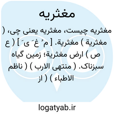 لغت نامه دهخدا ( مغثریة ) مغثریة. [ م ُ غ َ ی َ ] ( ع ص ) ارض مغثریة؛ زمین گیاه سبزناک. ( منتهی الارب ) ( ناظم الاطباء ) ( از اقرب الموارد ).