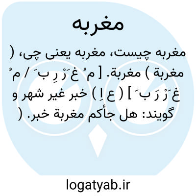 ( مغربة ) مغربة. [ م ُ غ َرْ رِ ب َ / م ُ غ َرْ رَ ب َ ] ( ع اِ ) خبر غیر شهر و گویند: هل جأکم مغربة خبر. ( منتهی الارب ). خبر دور و خبر بیگانه و گویند: هل جأکم من مغربة خبر؛ یعنی خبر بیگانه که از غیر آن شهر باشد. ( ناظم الاطباء ) ( از اقرب الموارد ).