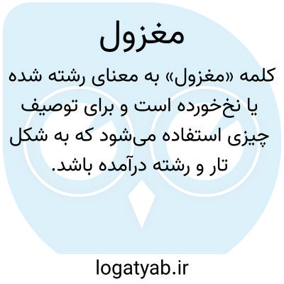 کلمه «مغزول» به معنای رشته شده یا نخخورده است و برای توصیف چیزی استفاده میشود که به شکل تار و رشته درآمده باشد. این واژه بیشتر در متون قدیمی، علمی و ادبی به کار رفته و بیانگر حالتی منظم و پیوسته در ساختار چیزی است که قبلاً یکپارچه یا خام بوده است.