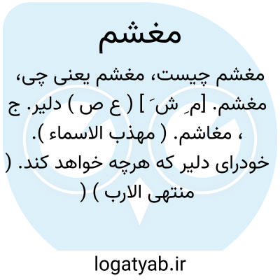 مغشم. [م ِ ش َ ] ( ع ص ) دلیر. ج، مغاشم. ( مهذب الاسماء ). خودرای دلیر که هرچه خواهد کند. ( منتهی الارب ) ( آنندراج ) ( از ناظم الاطباء ). مرد خودرای که از دلیری چیزی او را از آنچه اراده کند بازندارد. ( از اقرب الموارد ).