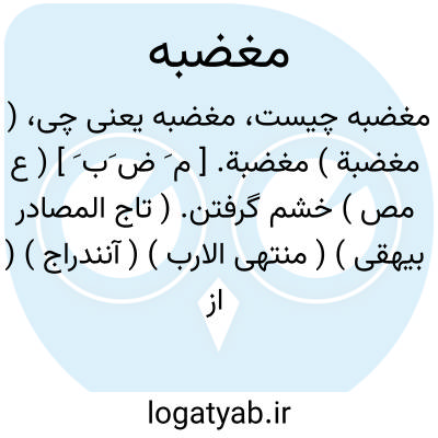 لغت نامه دهخدا ( مغضبة ) مغضبة. [ م َ ض َب َ ] ( ع مص ) خشم گرفتن. ( تاج المصادر بیهقی ) ( منتهی الارب ) ( آنندراج ) ( از ناظم الاطباء ) ( از اقرب الموارد ). || ( اِمص ) ضد رضا. ( از اقرب الموارد ).