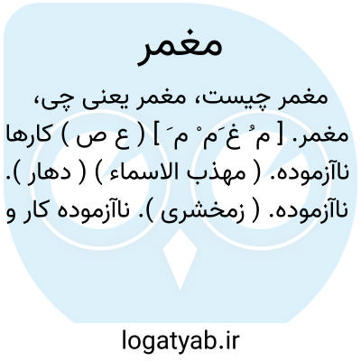 مغمر. [ م ُ غ َم ْ م َ ] ( ع ص ) کارها ناآزموده. ( مهذب الاسماء ) ( دهار ). ناآزموده. ( زمخشری ). ناآزموده کار و بی وقوف. ( ناظم الاطباء ). ناشی. ( یادداشت به خط مرحوم دهخدا ). || ثوب مغمر؛ جامه رنگ کرده به زعفران. || هو مغمر العیش؛ او کسی است که نمی رسد به عیش مگر اندکی از آن را و گفته شده است غافل از تمام عیش. ( از ذیل اقرب الموارد ).
