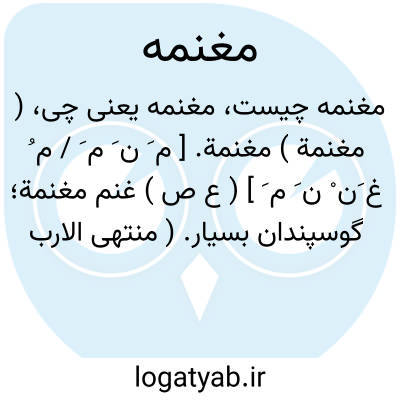 ( مغنمة ) مغنمة. [ م َ ن َ م َ / م ُ غ َن ْ ن َ م َ ] ( ع ص ) غنم مغنمة؛ گوسپندان بسیار. ( منتهی الارب ) ( آنندراج ) ( از اقرب الموارد ).