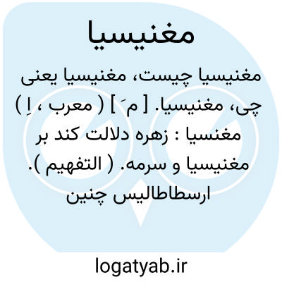 مغنیسیا. [ م َ ] ( معرب، اِ ) مغنسیا: زهره دلالت کند بر مغنیسیا و سرمه. ( التفهیم ). ارسطاطالیس چنین فرموده است که یک جزومغنیسیا بباید گرفت با یک جزو بسد و یک جزو زنگار، آنگه هر سه را خرد بساید. ( نوروزنامه ). و رجوع به مغنسیا شود. || منیزی کلسینه را گویند که ازتکلیس طباشیر فرنگی، یعنی کربنات منیزیم حاصل شود و فرمولش Mgo می باشد. طباشیر فرنگی مکلس. || طباشیر فرنگی و آن کربنات منیزیم است که گرد سفیدرنگی می باشد و ضد امتلاء معده به کار می رود. و رجوع به فرهنگ فارسی معین شود.