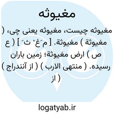 ( مغیوثة ) مغیوثة. [ م َغ ْ ث َ ] ( ع ص ) ارض مغیوثة؛ زمین باران رسیده. ( منتهی الارب ) ( از آنندراج ) ( از ناظم الاطباء ) ( از اقرب الموارد ). و رجوع به مغیثة شود.