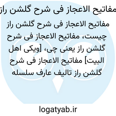 [ویکی اهل البیت] مفاتیح الاعجاز فی شرح گلشن راز تالیف عارف سلسله نوربخش شمس الدین محمد اسیری لاهیجی در قرن دهم هجری قمری است. کتاب مفاتیح الاعجاز کتابی حجیم و از شروح مهم بر مثنوی گلشن راز تالیف شیخ محمود شبستری است. مفاتیح الاعجاز با زبان فلسفی دشوار نگارش شده است. دانش ادبی اسیری لاهیجی و علم قرآن و حدیث او در شرح عرفانی ابیات مثنوی گلشن راز کامل است. شمس الدین محمد اسیری لاهیجی این کتاب را با اصطلاحات دقیق و احاطه کامل بر فلسفه اسلامی نگارش و از واژگان عربی استفاده فراوان کرده است. مفاتیح الاعجاز شامل بیش از صد و پنجاه عنوان فلسفه و عرفان اسلامی در شرح عرفانی مثنوی گلشن راز است.