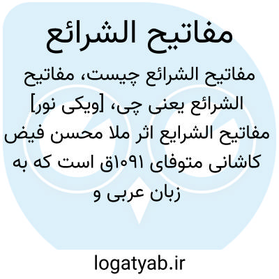 [ویکی نور] مفاتیح الشرایع اثر ملا محسن فیض کاشانی متوفای 1091ق است که به زبان عربی و پیرامون مباحث فقهی با شیوه نوین و متفاوت از سایر فقهاست.