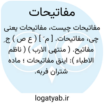 مفاتیحات. [ م َ ] ( ع ص ) ج ِ مفاتیح. ( منتهی الارب ) ( ناظم الاطباء ): اینق مفاتیحات؛ ماده شتران فربه. ( از اقرب الموارد ) ( از ناظم الاطباء ).