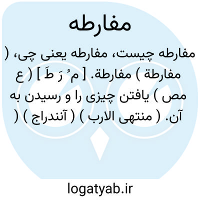 ( مفارطة ) مفارطة. [ م ُ رَ طَ ] ( ع مص ) یافتن چیزی را و رسیدن به آن. ( منتهی الارب ) ( آنندراج ) ( از ناظم الاطباء ) ( از اقرب الموارد ). || پیشدستی نمودن. فِراط. ( منتهی الارب ) ( از آنندراج ) ( از ناظم الاطباء ). با کسی پیشی گرفتن. ( تاج المصادر بیهقی ) ( از اقرب الموارد ).
