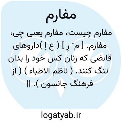 مفارم. [ م َ رِ ] ( ع اِ )داروهای قابضی که زنان کس خود را بدان تنگ کنند. ( ناظم الاطباء ) ( از فرهنگ جانسون ). || لته ها و این کلمه مفرد ندارد. ( یادداشت به خط مرحوم دهخدا ). لته های حیض، مفرد ندارد. ( از ذیل اقرب الموارد ).