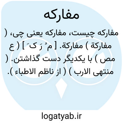 ( مفارکة ) مفارکة. [ م ُ رَ ک َ ] ( ع مص ) با یکدیگر دست گذاشتن. ( منتهی الارب ) ( از ناظم الاطباء ). با یکدیگر دست بداشتن و ترک دادن و جفای یکدیگر گذاشتن.( آنندراج ). ترک کردن چیزی را. ( از اقرب الموارد ).