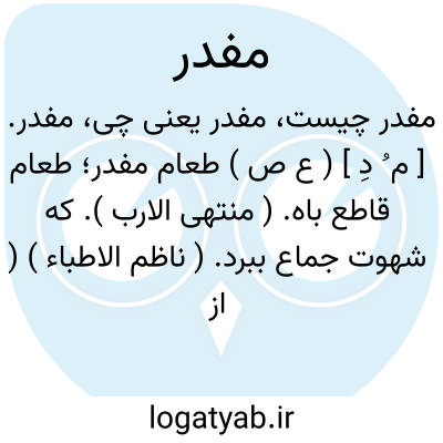 مفدر. [ م ُ دِ ] ( ع ص ) طعام مفدر؛ طعام قاطع باه. ( منتهی الارب ). که شهوت جماع ببرد. ( ناظم الاطباء ) ( از ذیل اقرب الموارد ).