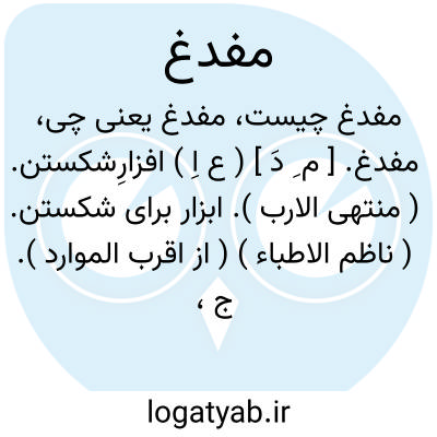 مفدغ. [ م ِ دَ ] ( ع اِ ) افزارِشکستن. ( منتهی الارب ). ابزار برای شکستن. ( ناظم الاطباء ) ( از اقرب الموارد ). ج، مفادغ. ( اقرب الموارد ).