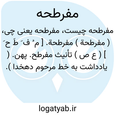 ( مفرطحة ) مفرطحة. [ م ُ ف َ طَ ح َ ] ( ع ص ) تأنیث مفرطح. پهن. ( یادداشت به خط مرحوم دهخدا ). و رجوع به مدخل قبل شود.