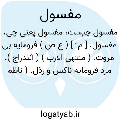 مفسول. [ م َ ] ( ع ص ) فرومایه بی مروت. ( منتهی الارب ) ( آنندراج ). مرد فرومایه ناکس و رذل. ( ناظم الاطباء ) ( از اقرب الموارد ).