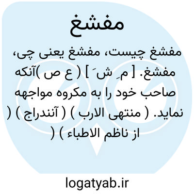 مفشغ. [ م ِ ش َ ] ( ع ص )آنکه صاحب خود را به مکروه مواجهه نماید. ( منتهی الارب ) ( آنندراج ) ( از ناظم الاطباء ) ( از اقرب الموارد ). || آنکه عنان زند اسب را و قهر کند بر وی.( منتهی الارب ) ( آنندراج ). کسی که لگام اسب را بکشد وبر آن قهر کند. ( ناظم الاطباء ) ( از اقرب الموارد ).
