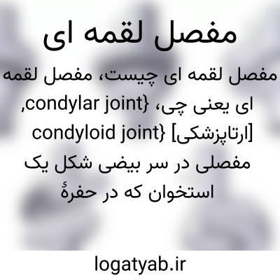 {condylar joint, condyloid joint} [ارتاپزشکی] مفصلی در سر بیضی شکل یک استخوان که در حفرۀ بیضی شکل استخوان دیگر حرکت می کند