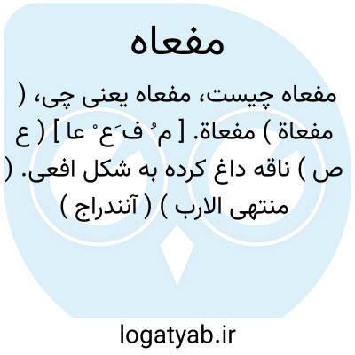 ( مفعاة ) مفعاة. [ م ُ ف َع ْ عا ] ( ع ص ) ناقه داغ کرده به شکل افعی. ( منتهی الارب ) ( آنندراج ) ( از ناظم الاطباء ). || ( اِ ) آن داغ که بر صورت افعی بود. ( مهذب الاسماء ). داغی که به شکل افعی باشد. ( منتهی الارب ) ( آنندراج ) ( ناظم الاطباء ) ( از اقرب الموارد ).