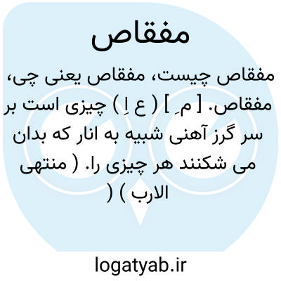 مفقاص. [ م ِ ] ( ع اِ ) چیزی است بر سر گرز آهنی شبیه به انار که بدان می شکنند هر چیزی را. ( منتهی الارب ) ( ناظم الاطباء ) ( از اقرب الموارد ).