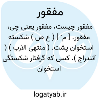 مفقور. [ م َ ] ( ع ص ) شکسته استخوان پشت. ( منتهی الارب ) ( آنندراج ). کسی که گرفتار شکستگی استخوان پشت باشد. ( ناظم الاطباء ) ( از اقرب الموارد ). || آنکه گرفتار بیماری پشت بود. ( ناظم الاطباء ). || شتر بینی بریده. ( منتهی الارب ) ( آنندراج ) ( از اقرب الموارد ): بعیر مفقور؛ شتر بینی بریده جهت رام گشتن. ( ناظم الاطباء ).