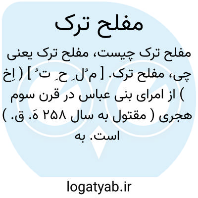 مفلح ترک. [ م ُل ِ ح ِ ت ُ ] ( اِخ ) از امرای بنی عباس در قرن سوم هجری ( مقتول به سال 258 هَ. ق. ) است. به سال 254 هَ. ق. به قم حمله کرد و جمع کثیری از مردم آنجا را کشت ودر سال 255 به طبرستان با حسن بن زیدبن علوی جنگید واو را شکست داد. وی در جنگ با سپاه زنج کشته شد. و رجوع به حبیب السیر چ قدیم تهران ج 1 ص 296 و الکامل ابن اثیر چ بیروت ج 7 ص 178، 189، 203، 252 و 253 شود.