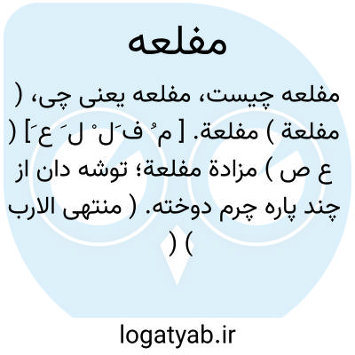 ( مفلعة ) مفلعة. [ م ُ ف َل ْ ل َ ع َ] ( ع ص ) مزادة مفلعة؛ توشه دان از چند پاره چرم دوخته. ( منتهی الارب ) ( ناظم الاطباء ) ( از اقرب الموارد ).