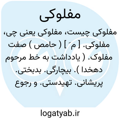 مفلوکی. [ م َ ] ( حامص ) صفت مفلوک. ( یادداشت به خط مرحوم دهخدا ). بیچارگی. بدبختی. پریشانی. تهیدستی. و رجوع به مفلوک شود.