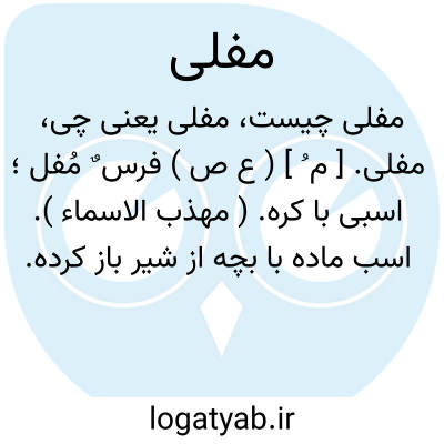مفلی. [ م ُ ] ( ع ص ) فرس ٌ مُفل؛ اسبی با کره. ( مهذب الاسماء ). اسب ماده با بچه از شیر باز کرده. مفلیة. ( منتهی الارب ) ( از آنندراج ) ( از ناظم الاطباء ) ( از اقرب الموارد ).