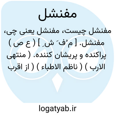مفنشل. [ م ُف َ ش ِ ] ( ع ص ) پراکنده و پریشان کننده. ( منتهی الارب ) ( ناظم الاطباء ) ( از اقرب الموارد ). || مرد بی باک. گویند: اتانا مفنشلا لحیته؛ ای مفنشئاً. ( منتهی الارب ) ( ناظم الاطباء ). و رجوع به مدخل بعد شود.
